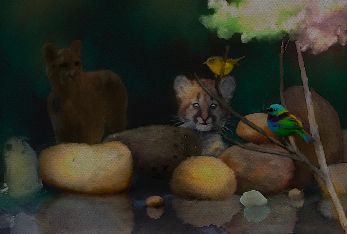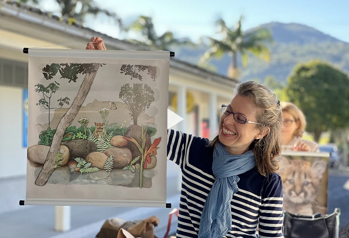 A partir do livro “Felina fábula” e de atividades interdisciplinares nas escolas públicas, estimulamos o contato com a arte e apoiamos a conservação e a valorização da Mata Atlântica.