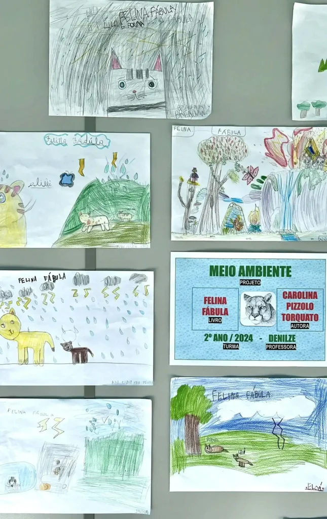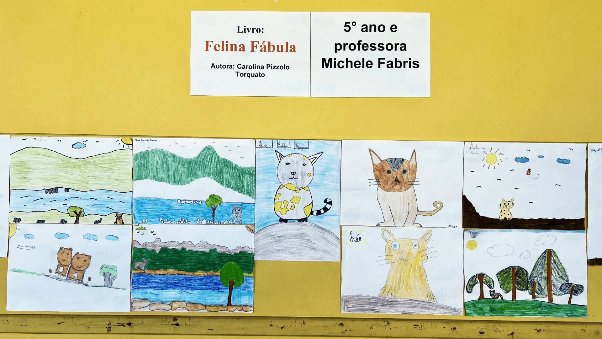 Uma das maiores alegrias da nossa equipe é chegar a uma escola e perceber que as crianças já leram, releram e até recriaram a sua própria “Felina fábula” junto com as professoras e os professores!