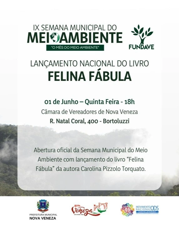 O livro “Felina fábula” foi lançado no dia 1º de junho de 2023 na Câmara Municipal de Nova Veneza, na abertura da Semana do Meio Ambiente, a convite da FUNDAVE, Fundação Municipal do Meio Ambiente de Nova Veneza.