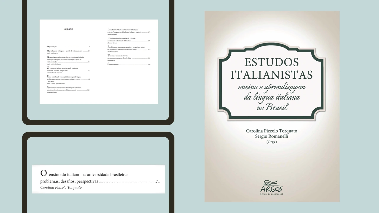 O capítulo “O ensino do italiano na universidade brasileira: problemas, desafios, perspectivas” aborda o contexto específico do ensino da língua italiana nos cursos de graduação das universidades brasileiras.