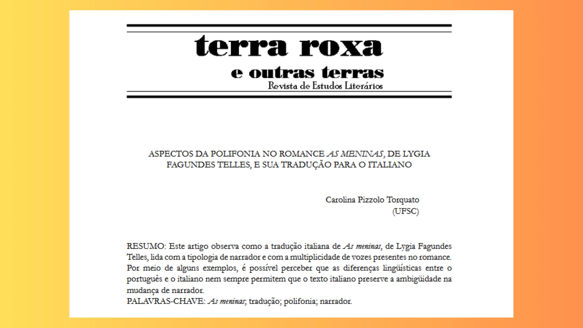 O artigo “Aspectos da polifonia no romance “As meninas”, de Lygia Fagundes Telles, e sua tradução para o italiano” observa como a tradução italiana lida com a tipologia de narrador e com a multiplicidade de vozes presentes no romance. Por meio de alguns exemplos, é possível perceber que as diferenças linguísticas entre o